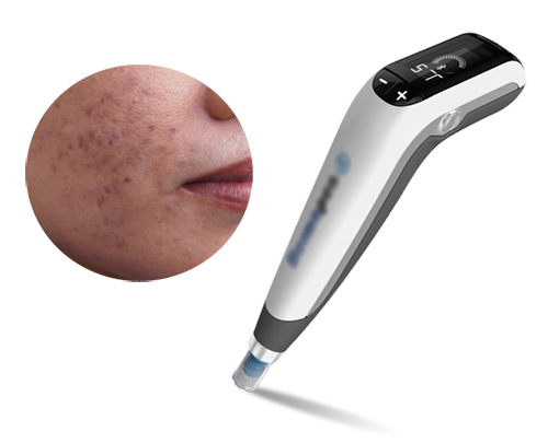 新型醫療微針筆的治療原理為使用特殊設計的微針組,每秒在皮膚上產生1920個孔,以微破壞的方式進行,刺激纖維底層細胞、讓膠原蛋白增生,得以治療肌膚問題,整個療程可在五分鐘內結束。新型醫療微針筆療程的適應症不僅是毛孔改善,還有凹陷形疤痕、膠原蛋白誘導治療(CIT)、除紋、肌膚活化、皮膚老化皺紋、黃褐斑(白斑)、女性妊娠紋、雄性落髮、私密處緊實等。除了單一形式的治療,更可以讓醫生評估狀況,以雙重或多重形式,同時進行治療。