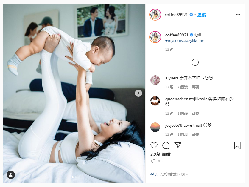 如果不特別提起,很難想像Coffee已經身為人母,看起來容光煥發的臉蛋跟玲瓏有致的線條,就算說是大學生也不為過;Coffee也不時會在Instagram和YouTube等社群平台分享自己的運動菜單和生活瑣事,甚至在有了寶寶之後,更推出了適合親子的運動,讓喜愛她的粉絲能夠追隨她的腳步,也因運動讓生活變得更快樂、美好。