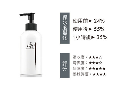 添加了多種B群,聞起來有維他命的味道,讓人使用覺得有健康的感覺,這瓶除了補水,鎖水能力也不錯,使用後會在角質層形成一層保濕防護膜。