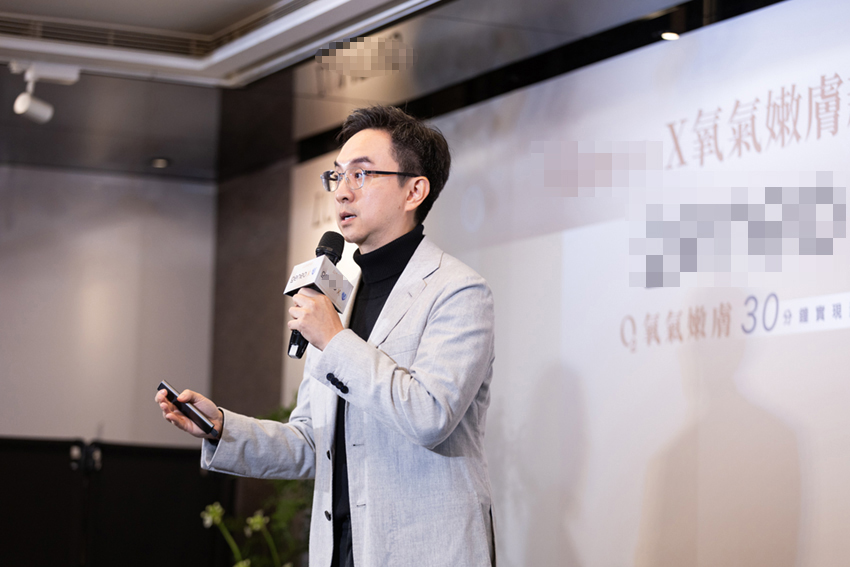 ▲皮膚專科醫師林亮辰提出情緒美學的概念,「氧氣嫩膚」是結合科技與精準保養理念的創新成果。