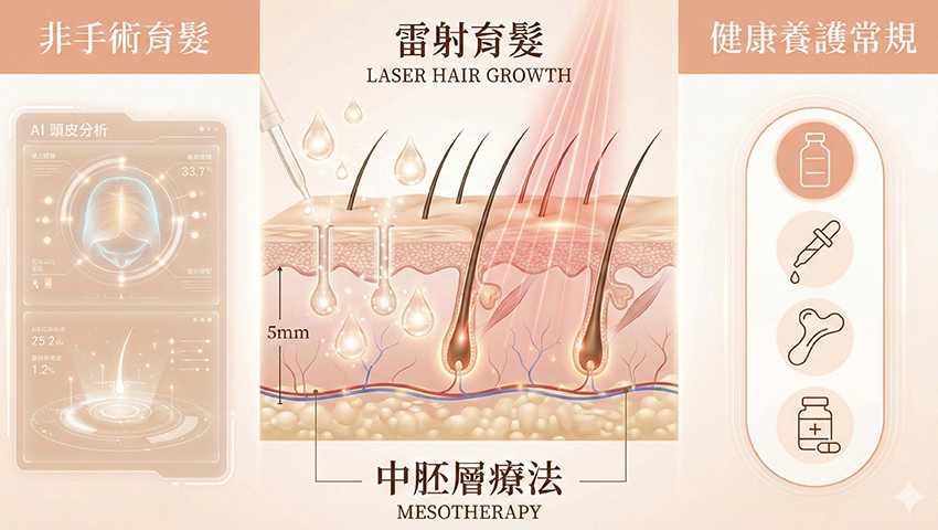 過去,提到髮際線後移,大眾的第一反應往往是「植髮」。然而,隨著醫療技術的精細化,我們更強調「毛囊管理」與「非手術介入」。對於那些害怕手術、不想經歷漫長恢復期,或只是處於掉髮初期的族群來說,現在有更優雅、無痛的選擇。