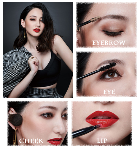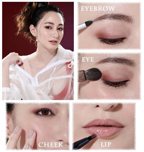 因為眼妝跟唇妝色彩較濃烈,降低眉色來平衡整體的妝容,利用淺咖啡色的染眉膏將原本偏褐色或黑色的眉毛刷淡,同時也創造毛流感。