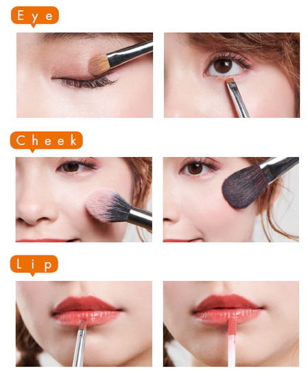 充滿活力感的糖果妝挑選的當然就是帶光澤、亮粉的質地,色系的選擇可以代表夏日感的橘色、黃色甚至藍色搭配,如果不敢挑戰太鮮豔色的女孩,不妨就以最襯膚色白皙的橘色作為全臉主色,運用在眼妝、頰彩及唇妝上!