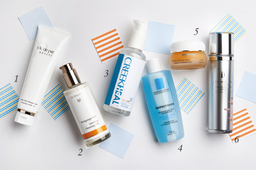 〈1〉肌膚之鑰光采卸妝霜130ml/NT2,200。〈2〉Dr.Hauschka德國世家律動卸妝洗面乳145ml/NT1,200。〈3〉CREEKHEAL活氧卸妝凝膠200ml/價格電洽。〈4〉理膚寶水高效溫和眼部卸妝液125ml/NT800。〈5〉DARPHIN花梨木按摩潔面膏40 ml/NT1,700。〈6〉DERM iNSTITUTE肌因抗老高機能潔膚乳130ml/NT2,400。
