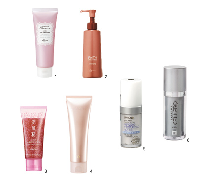 〈1〉艾杜紗溫感卸妝凝膠120g/NT650。〈2〉佳醫美人FAITH唯膚奇蹟經典卸妝凝膠200ml/獨家優惠NT1,790(至1/19前)。〈3〉潤肌精蜜桃溫感去角質凝膠120g/NT210。〈4〉SHISEIDO碧麗妃溫˚C溫感卸粧凝膠150g/NT1,350。〈5〉婕凡希藥粧保濕修護乳液30ml/NT 680。〈6〉杜克E原生賦活霜30ml/NT3,800。