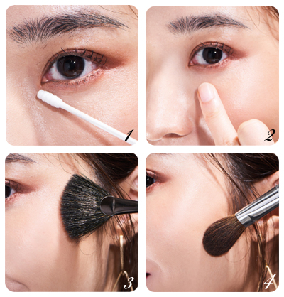 ① 補妝前先以棉花棒將殘妝清理,特別是眼周的地方容易出現暈染、脫妝的情形。