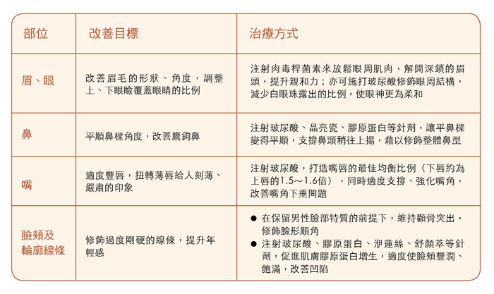 黃千耀醫師指出,想要改善渣男面相,可以從「眉眼」、「鼻」、「嘴」及「臉頰及輪廓線條」來著手,相關目標和治療方式如下: