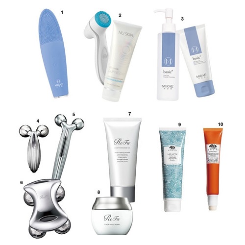 ▸ 1.未來美 溫感音波洗臉機/NT1,680。2.NU SKIN LumiSpa 新動機+淨膚露 100ml/NT5,860。3.未來美 肌本保濕洗卸組/NT1,160。4.ReFa CARAT RAY 白金滾輪 196g/NT8,700。5.ReFa S CARAT RAY 白金美容滾輪 35g/NT6,300。6.Refa for body 白金美體滾輪 360g/NT10,900。7.ReFa BODY MASSAGE GEL 美體按摩凝膠 120g/NT1,600。8.ReFa FACE-UP CREAM 超緊緻乳霜 50g/NT1,700。9.ORIGINS 漫步在雲端腿部舒緩霜 150ml/NT1,150。10.ORIGINS 元氣十足亮眼眼霜氣墊筆 10ml/NT850。