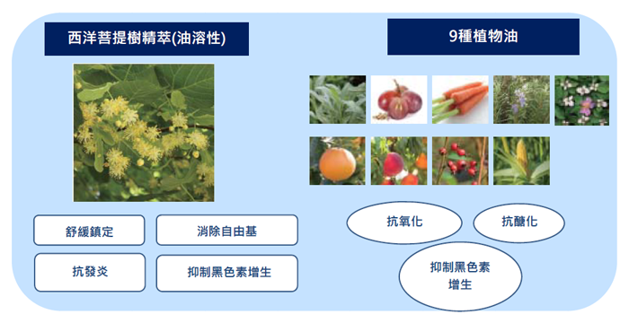 這些植物萃取,再與「高效美白維他命油」結合,內含酯化維他命C與天然維他命E,讓白皙肌膚效果再升一級。