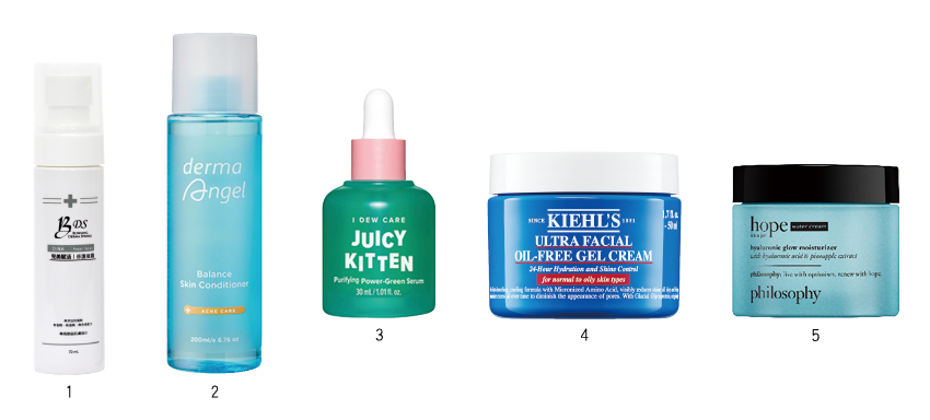 夏天出油量增加,很多人不喜歡臉上擦保養品,但油水失衡的狀態下,反而會讓油脂分泌更多。除了控油外,建議可以挑選清爽型的保濕產品,如凝膠、凝露等,或是無油的保濕凝凍,適當的補水保濕,不怕帶給肌膚負擔,也能減緩出油的情形。