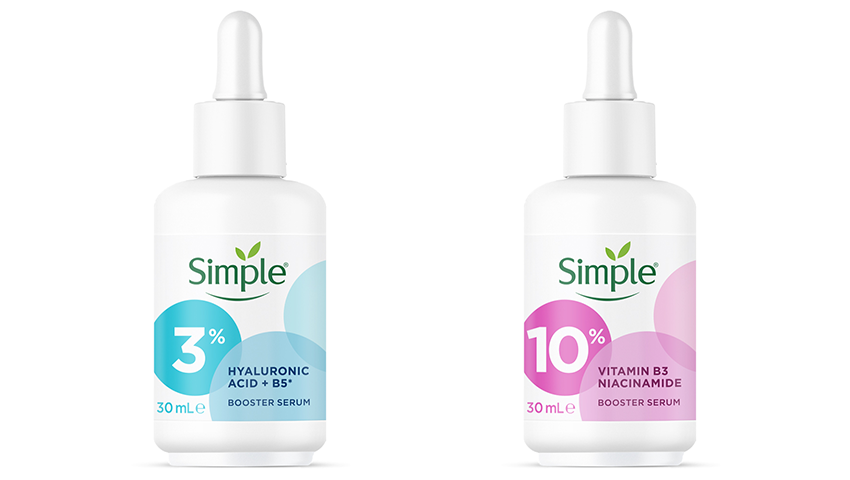 有別以往Simple軟管包裝精華,今年2支超能安瓶精華皆採用可回收玻璃瓶身+滴管設計,使用前搖均勻,用量好控制,讓消費者可用開架好入手價格輕鬆體驗醫美等級保養。粉藍色的修護安瓶及粉紅色發光安瓶雙主打,對抗缺水乾燥和暗沉瑕疵,幫助肌膚修護鎖水、維持柔嫩透亮,散發光亮自然好氣色!