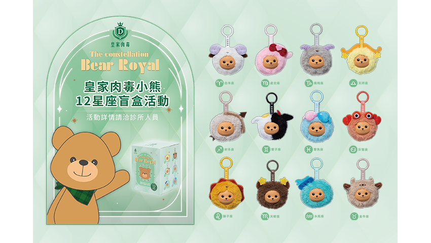 皇家肉毒效果優異且自然,美夢文獻更指出術後滿意度高達95%,深受台灣許多愛美人士的喜愛。今年皇家肉毒更推出可愛的皇家肉毒小熊 12星座盲盒活動 (活動詳情請洽曼齡診所),讓你從頭美到腳,還能跟上潮流,今年自信閃亮一整個夏天。