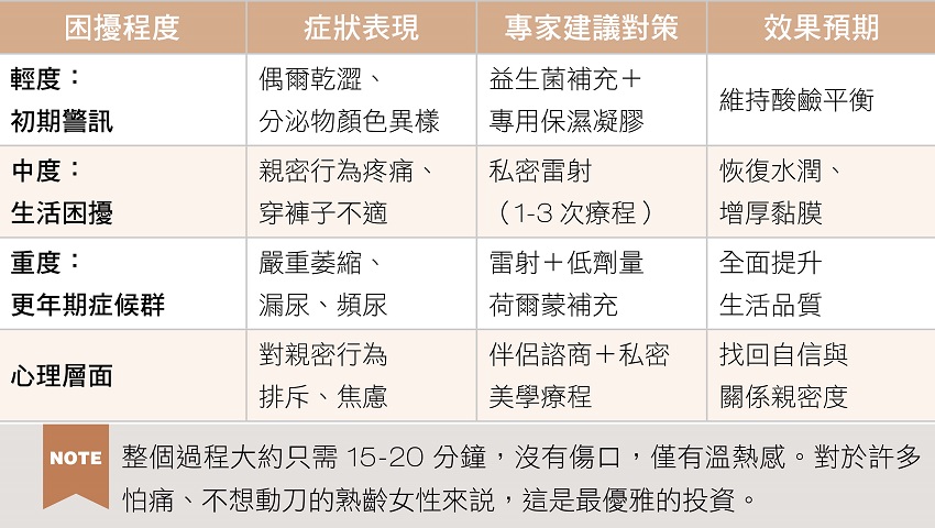 面對不同程度的困擾,妳該如何選擇?我們整理熟齡私密對策: