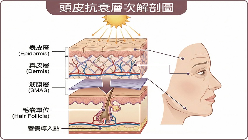35歲後,抗衰老不該止於髮梢,而應深入頭皮。以下是我們為你整理的「進階抗衰清單」: