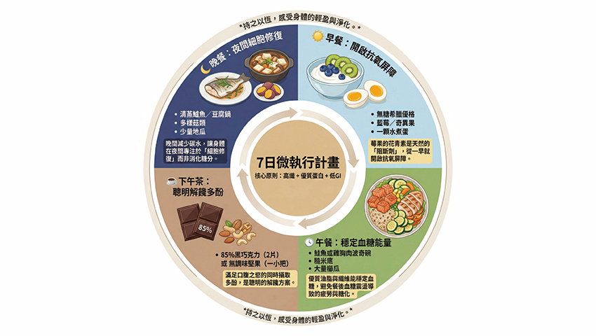 逆轉糖化的第一步是「止損」。這不代表要過著白開水配生菜的苦行生活,而是要掌握低GI(升糖指數)與抗氧化的核心。