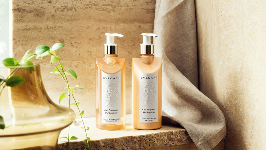 將這份嗅覺體驗延伸至日常生活,帝王紅茶香居家香氛系列也同步推出,讓 BVLGARI酒店及渡假村專屬的優雅氛圍轉化為日常沐浴保養儀式。帶有細緻香氣的 沐浴凝膠與質地輕盈的身體乳,讓人能在家中重現寶格麗式的從容與靜謐。兩款產品皆含至少 87% 天然來源成分,並可與香氛層疊使用,延續並提升整體香氣體驗。