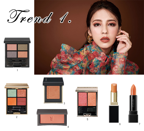 ▸ 1.Celvoke 玩色深邃眼影盤EX01/NT2,250。2.LUNASOL 晶巧霓光眼彩盒/NT2,250。3.SUQQU 晶采立體眼影#11透墨/NT1,400。4.THREE 蜜光修容#20/NT1,100。5.LUNASOL 晶巧霓光頰彩#02/NT2,250。6.SUQQU 晶采艷澤唇膏#12金銀杏/NT1,900。7.Celvoke 玩色訂製唇膏#EX04/NT1,150。