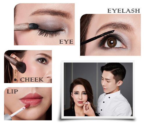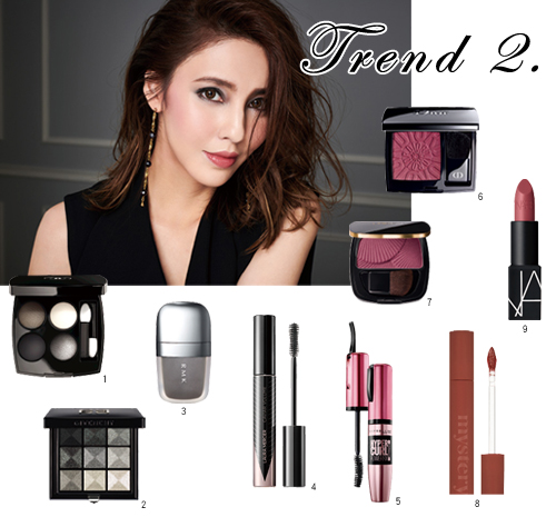 凱鈞話趨勢:不論在日系、歐美的秋冬妝容趨勢,今年「灰色」都是個重點,透過不同色調、質地的灰色眼影暈染,能夠讓煙燻眼妝減少距離感,搭配莓果色、寫色調的頰彩及唇彩增加氣色,讓整體的妝容個性中又不失女人味。