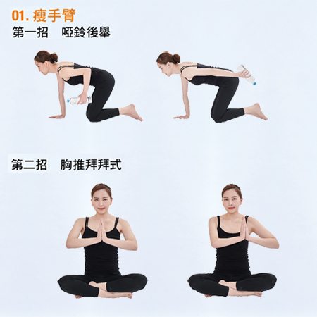 【小叮嚀】在推動時會感受到胸口兩側的肌肉是用力的,想要更進階的話,可以改躺姿進行,做此動作時,速度一定要放到最慢,這樣效果才會好喔!