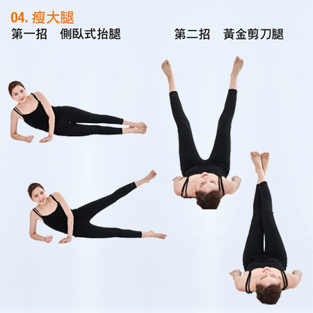 【小叮嚀】腿保持伸直狀態後往下,讓大腿內側併攏,動作放越慢越好,這樣才能有效鍛鍊到大腿肌群。